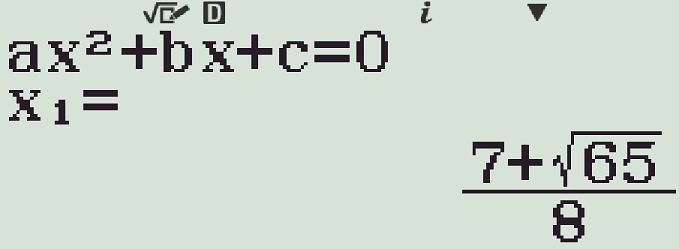 Dùng chức năng giải phương trình bậc 2 trên máy tính cầm tay, ta dễ dàng tìm ra hai nghiệm là \(x_1=\dfrac{7+\sqrt{65}}{8}\) và \(x_2=\dfrac{7-\sqrt{65}}{8}\).