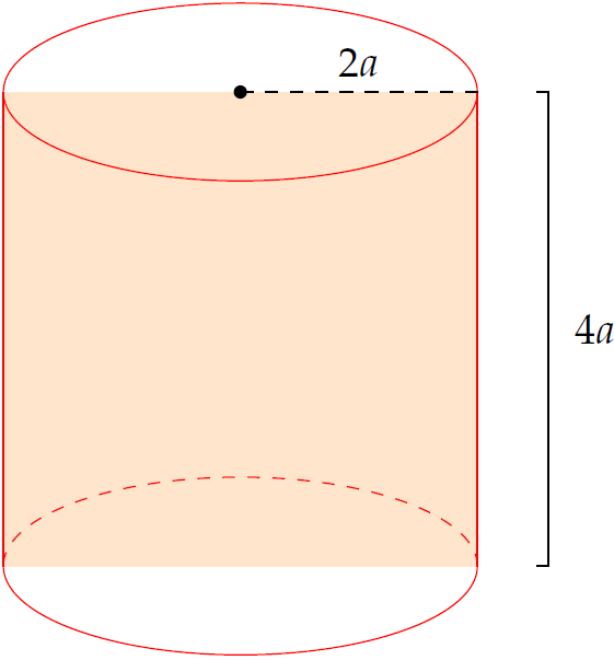 Vậy \(V=S_{\text{đáy}}\cdot h=\pi\cdot4a^2\cdot4a=16\pi a^3\).