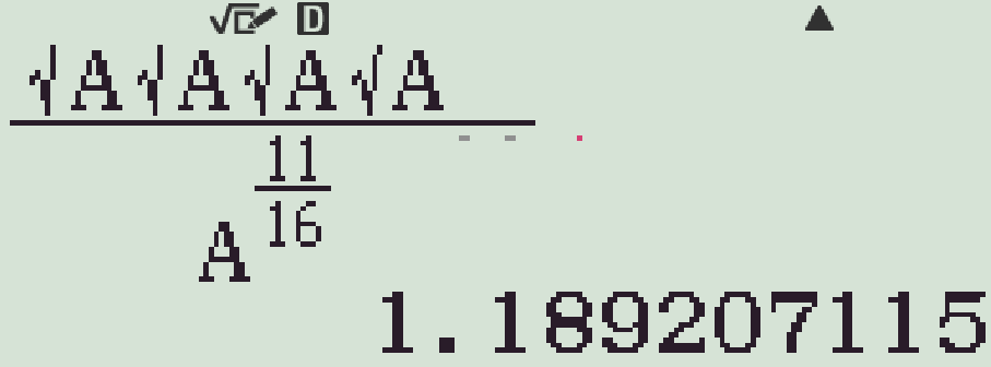 &=\dfrac{\sqrt{a^{\tfrac{15}{8}}}}{a^{\tfrac{11}{16}}}=\dfrac{a^{\tfrac{15}{16}}}{a^{\tfrac{11}{16}}}\\