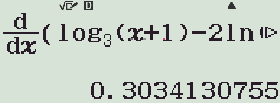 Đạo hàm của hàm số \(y=\log_3(x+1)-2\ln(x-1)+2x\) tại điểm \(x=2\) bằng